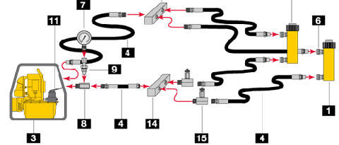 2.設計四組截止閥,可隨時(shí)控制千斤頂同步升與降;